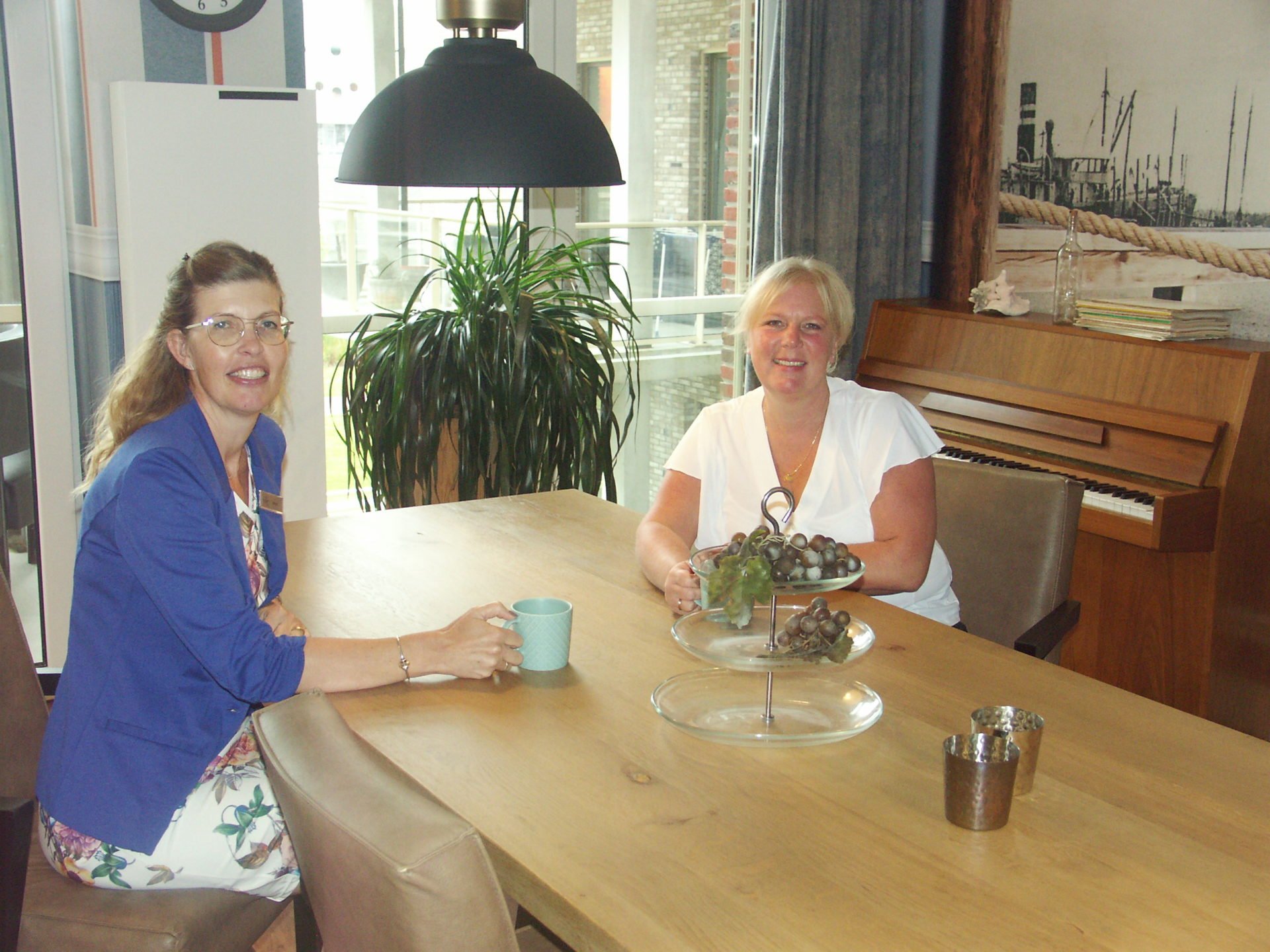 „Wij denken heel graag in oplossingen en gaan daarin verder dan de meeste organisaties.” Zo heeft De Leyhoeve vorig jaar een ‘Adviseur Wonen met Zorg in dienst genomen, Janine Finke. „Janine is het eerste aanspreekpunt voor mensen die interesse hebben in wonen met zorg bij De Leyhoeve’, vertelt Annet. „Zij begeleidt geïnteresseerden door het gehele proces, van het eerste advies tot aan het verhuismoment, waarbij ook onze buddy’s een rol spelen. Elke bewoner heeft altijd twee buddy’s: één buddy vanuit de huiskamer en één buddy vanuit de zorg. Dat vindt de familie meestal heel erg prettig.” Annet benadrukt het belang van het voortraject, “omdat we ervoor willen zorgen dat we de juiste match tot stand kunnen brengen en de bewoners zo op de juiste plek terecht komen.”