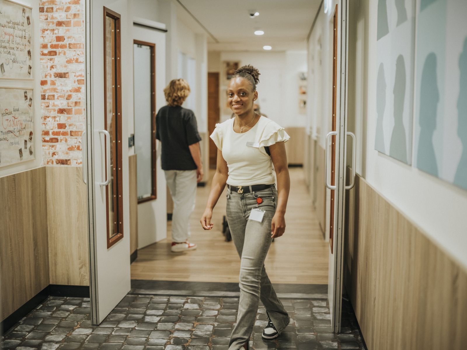 Na de overheerlijke personeelslunch, gemaakt door collega's uit het restaurant, werp je een blik op het rooster en zet je de nodige acties uit. Later schuif je aan bij een overleg met andere teamcoördinatoren en de zorgmanager. Samen bespreek je wat er speelt op operationeel niveau, welke locatiebrede taken prioriteit hebben en hoe jullie dingen nóg beter kunnen organiseren. Daarna ondersteun je een van de zorgcoördinatoren bij een familiegesprek. En als afsluiter? Een rondje door het Leijpark met collega’s. Even frisse lucht, een praatje en verbinding.